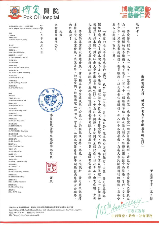博愛醫院感謝信2025