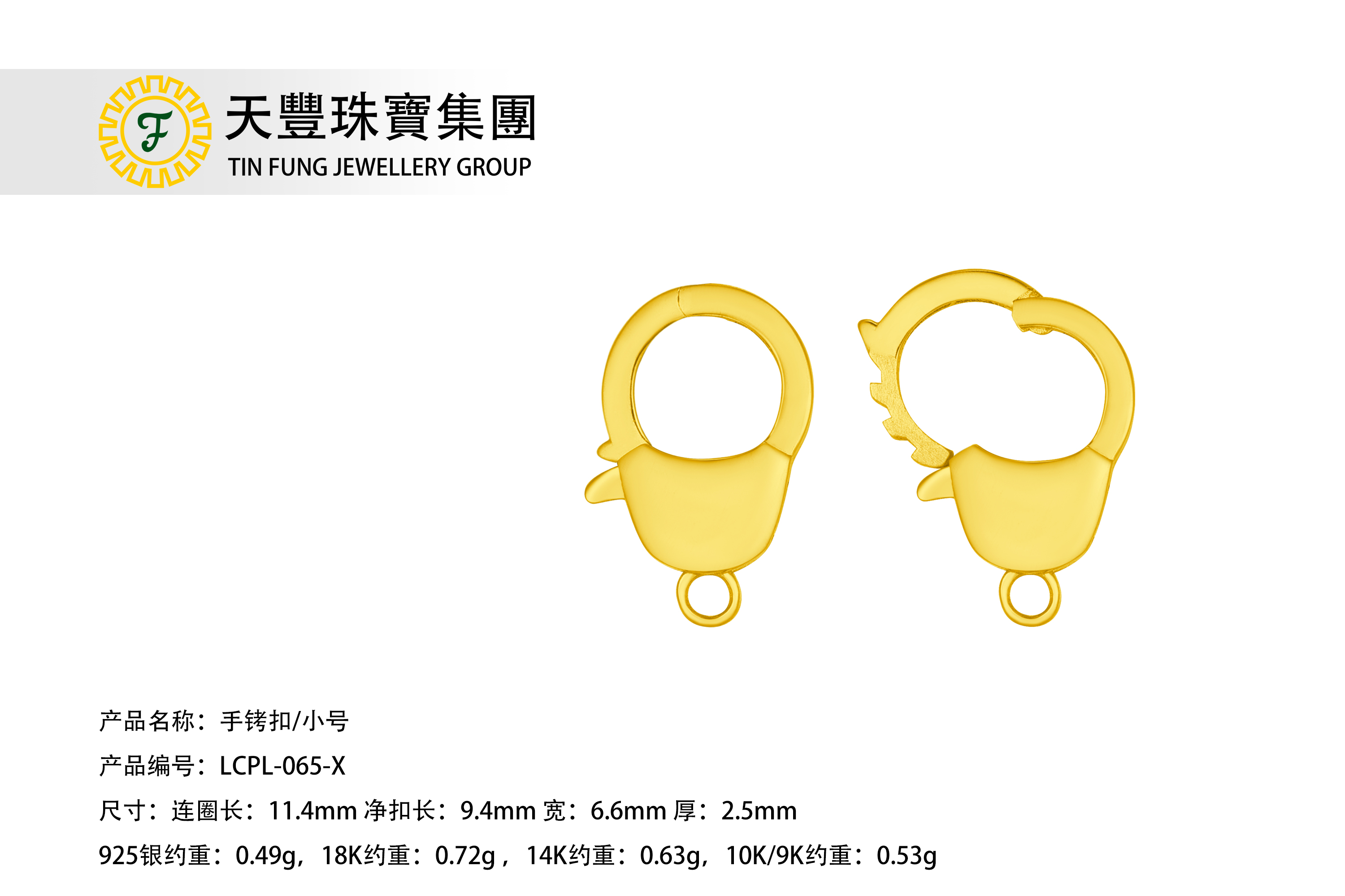 Purity 18K0.990g per Length x Width x Thickness 10.8x3.5x2.50.990g per Category: Lobster Clasp / Lobster LockProduct Details成色 / Purity 重量(一個) / Weight(One piece) 18K 1.024 14K 0.891 10K 0.782 9K 0.758 PT 1.344 銀 0.691