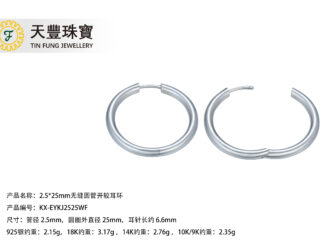 成色 18K3.17公克 每 對 管徑/外直徑 2.5*25mm3.17公克 每 對 2.5*35mm无缝圆管开较耳环