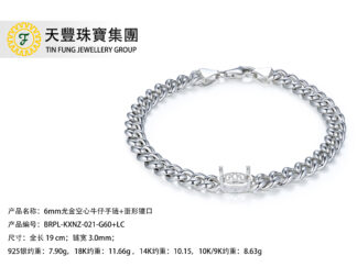 6mm光金空心牛仔手鏈+蛋形鑲口