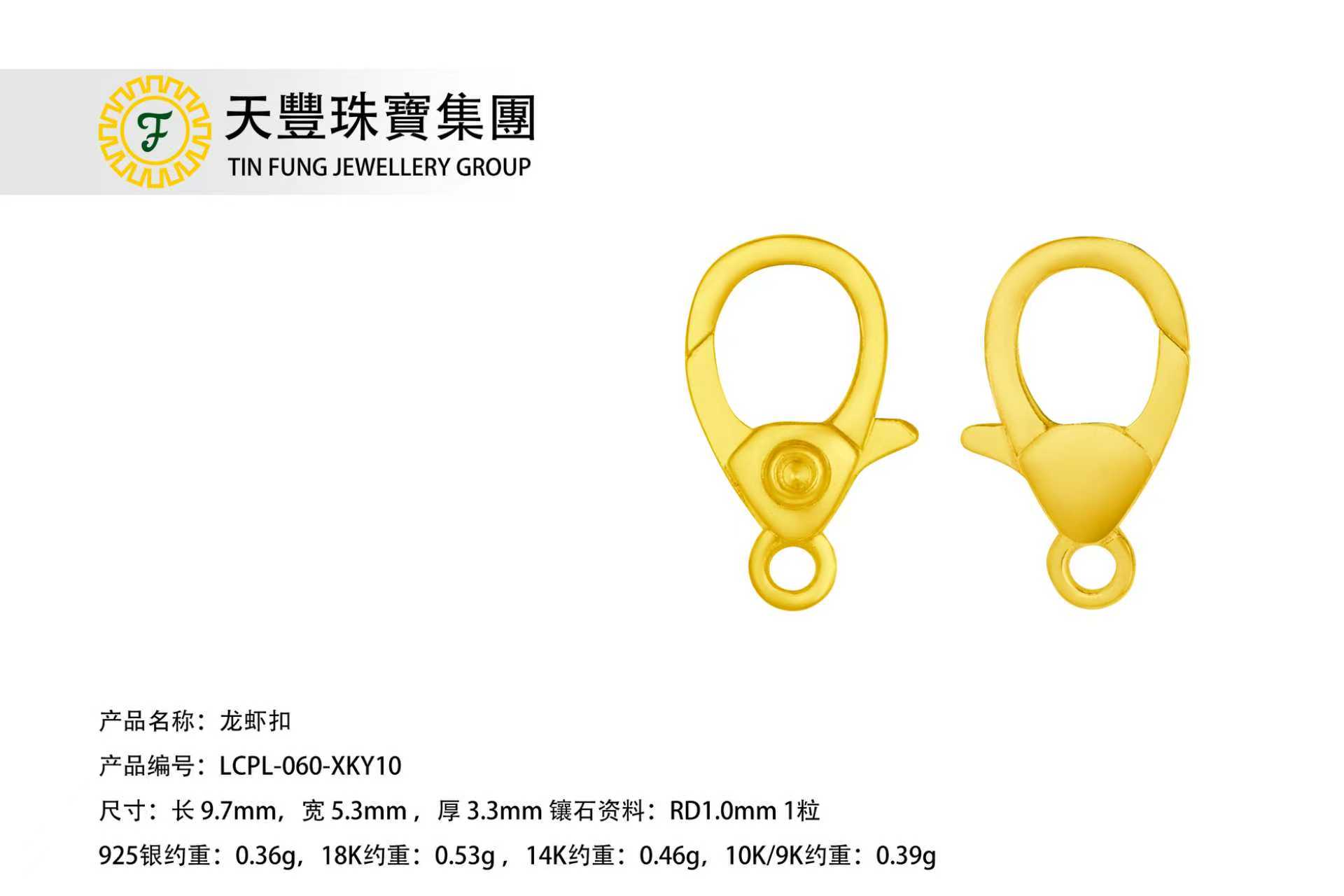 成色 18K0.360公克 每 件 長x闊x厚 10.5x5x2.5mm0.360公克 每 件 分類: 龍蝦扣系列產品類別查詢表