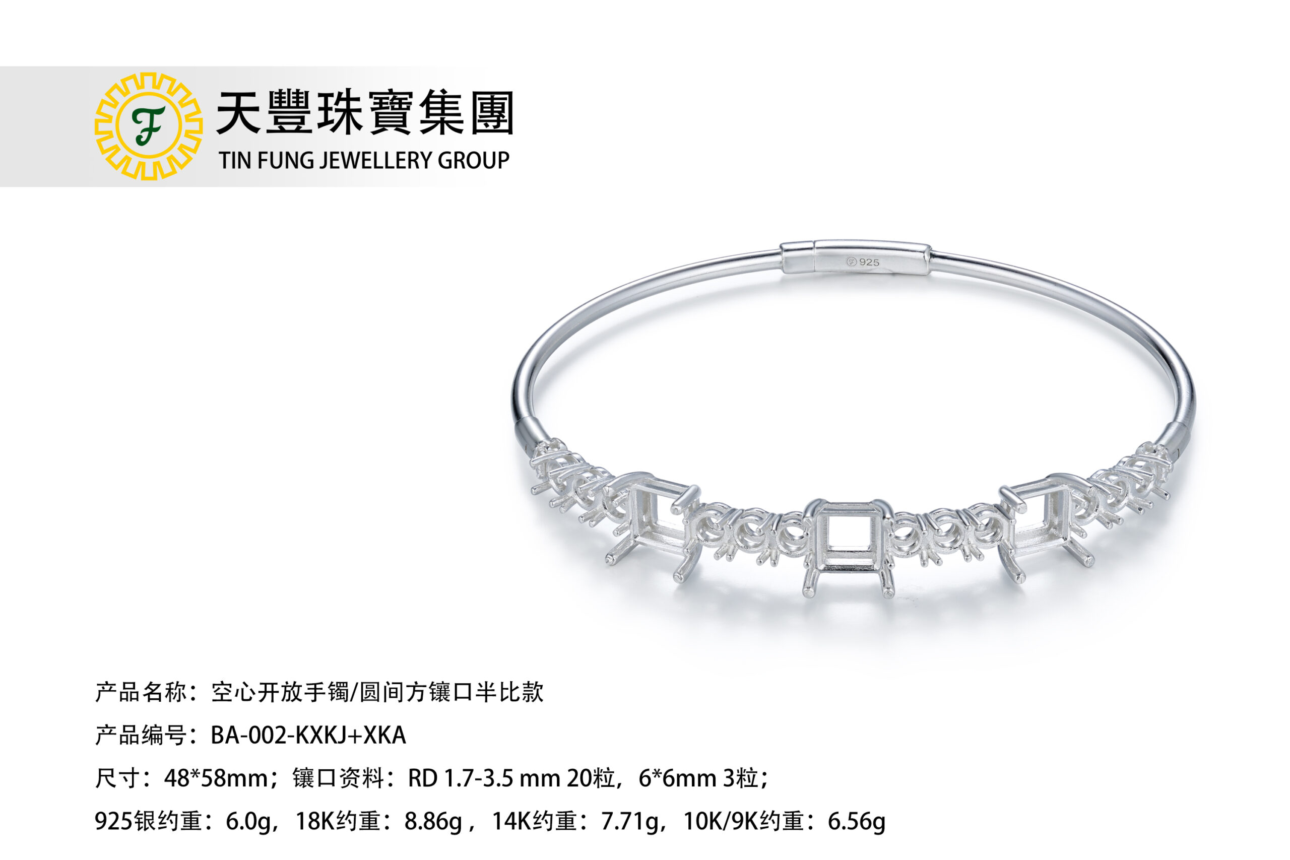 空心開較手鐲/圓間方鑲口半比款