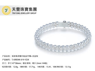 商品名稱: 雙排珠間鑲口鈦金手鐲+光金制