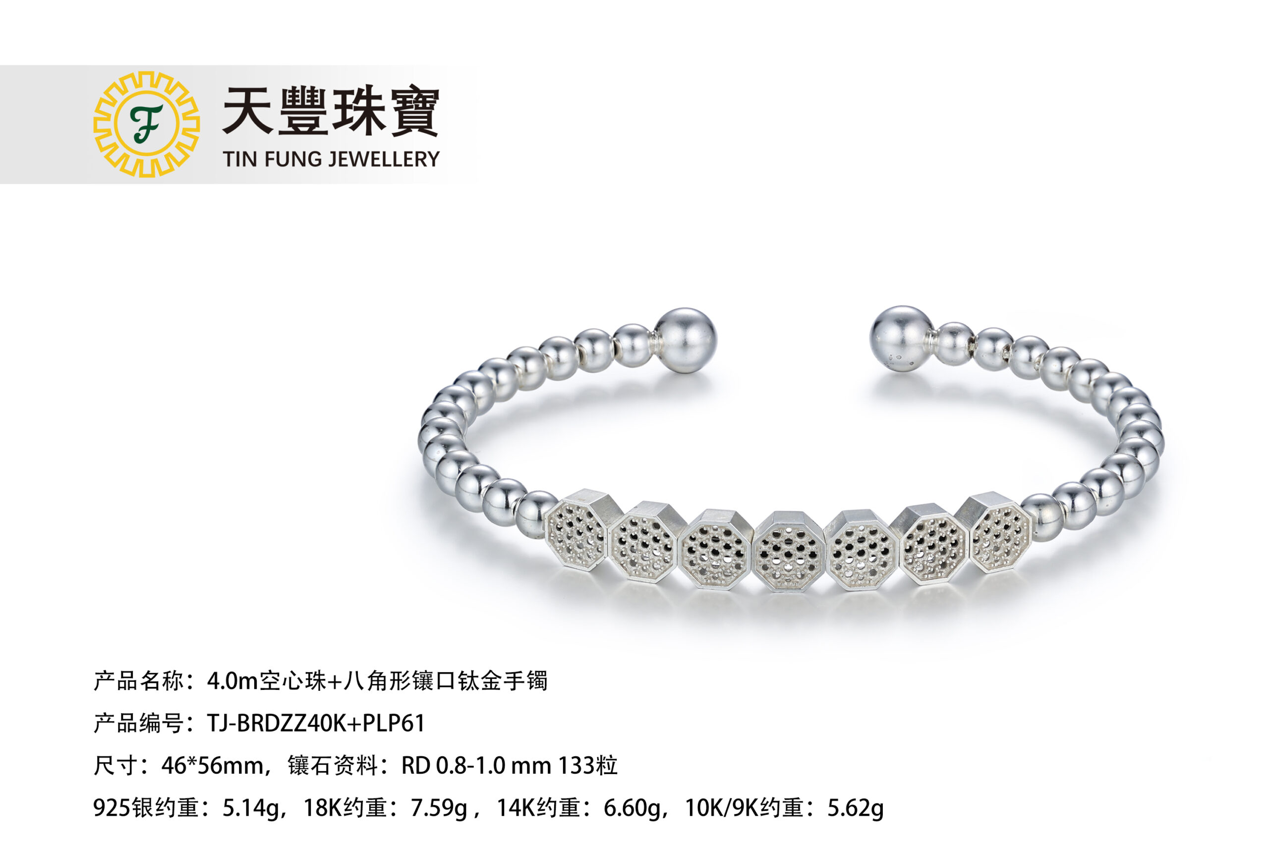 4.0mm空心珠+八角形鑲口鈦金手鐲