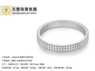 *source: meta.php( show the attributes in list)SKU : BRPL-LHBXF30Size : 6.375 inch 石數 : 3*3mm 46P 成色 重量 (每件) 18K - 18.140 克